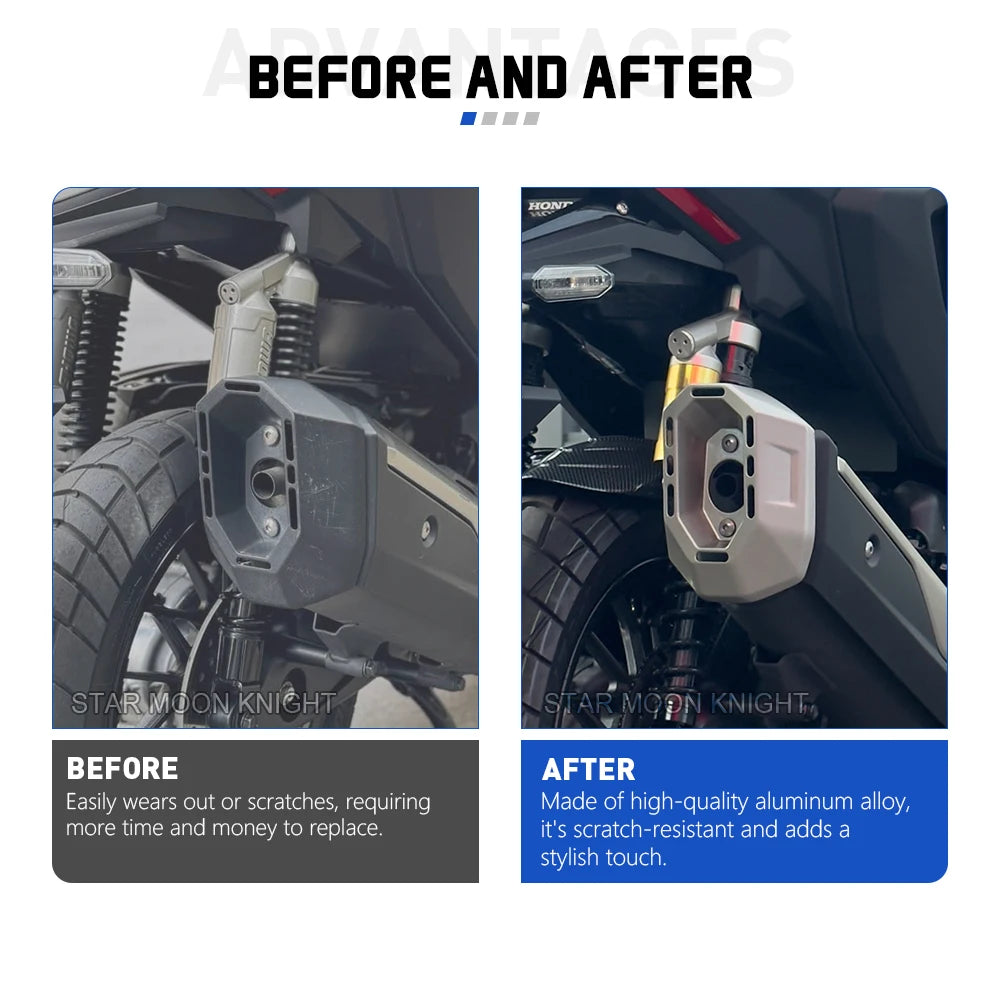 Ochranný kryt výfuku Honda ADV 350 z nerezové oceli, neinvazivní instalace, dekorativní sada krytu koncovky