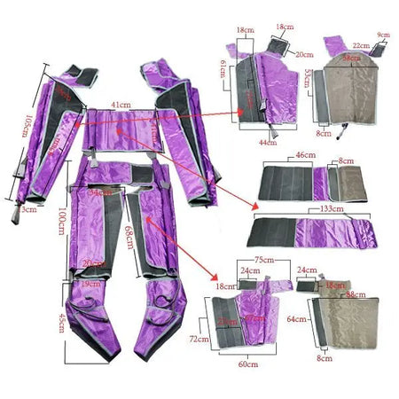 Stroj na lymfatickou drenáž s vzduchovým kompresním pressoterapií v fialové barvě nabízí jemný, efektivní způsob, jak stimulovat lymfatickou drenáž, zmírnit otoky a zlepšit prokrvení. Navržen pro pohodlí a snadné použití, využívá časované sezení s tlakem vzduchu na podporu regenerace po aktivitě a pomáhá vám cítit se lehčí po celý den. Informace o značce nejsou specifikovány a toto zařízení pochází z Pevninské Číny. Má design bez chemikálií pro klid na duši.