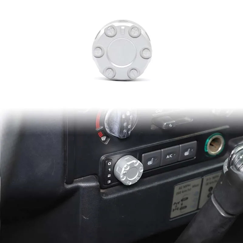 Kryt ovládacího knoflíku výšky světlometu z hliníkové slitiny stříbrný Defender