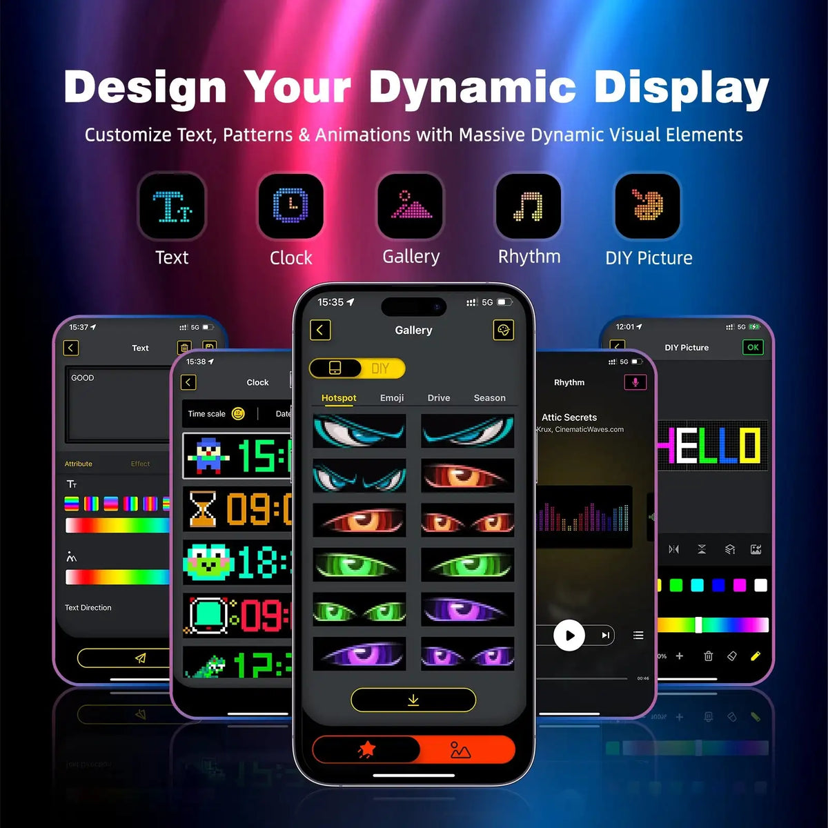 Představujeme Ambient Light LED Matrix Display 20x64 Pixel od Bevinsee — kompaktní, flexibilní pixelový displej, který přináší programovatelné náladové osvětlení do jakéhokoli prostoru. Ovládaný pomocí aplikace a dálkového ovládání vám umožňuje snadno vytvářet ambientní scény, dekorativní vzory nebo posouvající se zprávy. S rozměry 34,5 cm na 10,3 cm a hmotností přibližně 0,37 kg se tato atmosférická lampa vejde za monitor, na polici nebo pod skříňky, aby snížila únavu očí a přidala jemný lesk. Vyrobeno s certifikacemi CE a RoHS a bez chemikálií s vysokým rizikem, je bezpečné pro domácnosti a kanceláře. Pocházející z pevninské Číny, tento LED flexibilní pixelový displej spojuje moderní technologii s lehkým, prostorově úsporným designem.