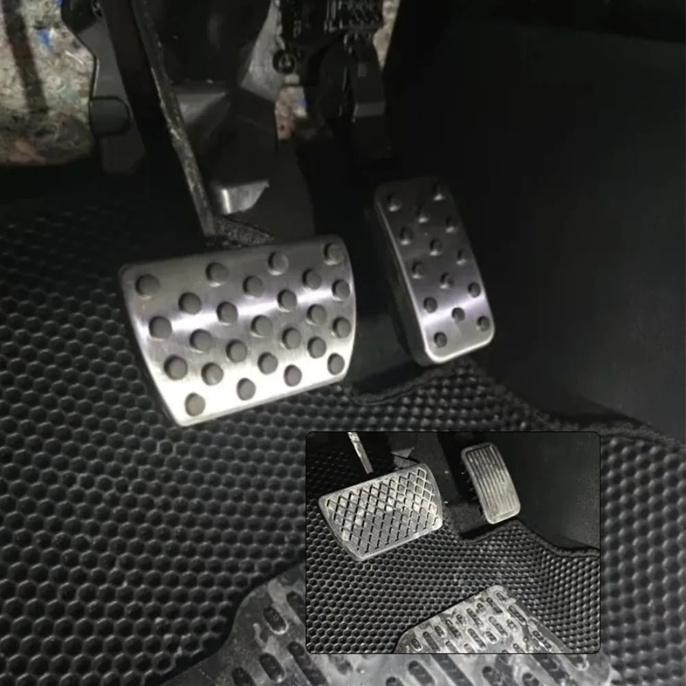 - Zvýšený grip a kontrola: texturovaný povrch z nerezové oceli v kombinaci s gumovou vložkou poskytuje bezpečné umístění nohy, zlepšuje reakci brzdění a akcelerace při každodenním řízení a za mokra.
