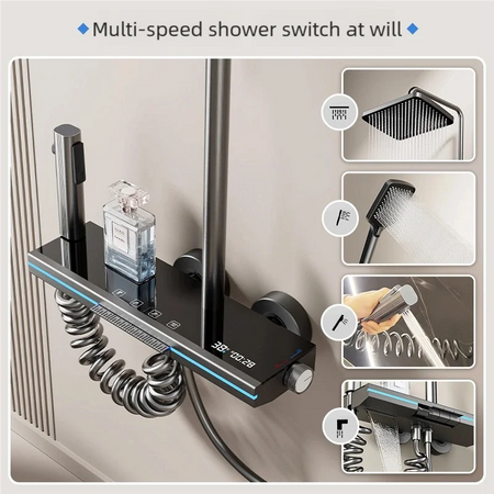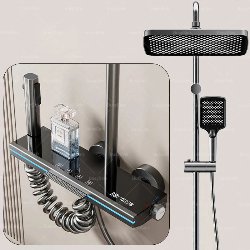 Užijte si přesnou kontrolu teploty, zlepšenou viditelnost a atmosféru jako ve wellness s minimálním úsilím. BusySink Sprchový Systém řeší nekonzistentní teplotu vody a omezené pokrytí shora kombinací široké čtvercové sprchové hlavice, nastavitelné výšky a jasného digitálního displeje — což činí každodenní sprchování bezpečnějším, pohodlnějším a stylovějším.
