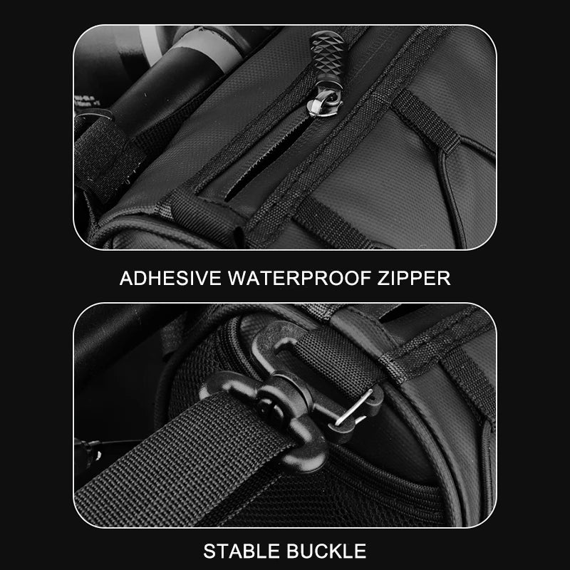 Dostupná v černé, šedé a oranžové barvě, taška kombinuje praktické úložiště s elegantním vzhledem. Podporuje flexibilní instalaci na přední nebo zadní část kola a je vhodná pro různé konfigurace—taška na horní trubku, taška na spodní trubku, taška na řídítka, sedlová taška nebo dokonce kompaktní batoh, když je to potřeba. To udržuje vaše vybavení přístupné a snižuje nepořádek, takže se můžete soustředit na jízdu.