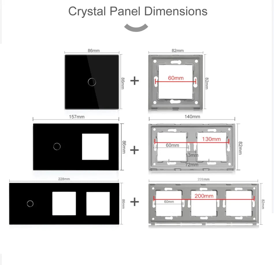 - Materiál: Plast, Skleněný panel & železný plech, plastový spínací modul