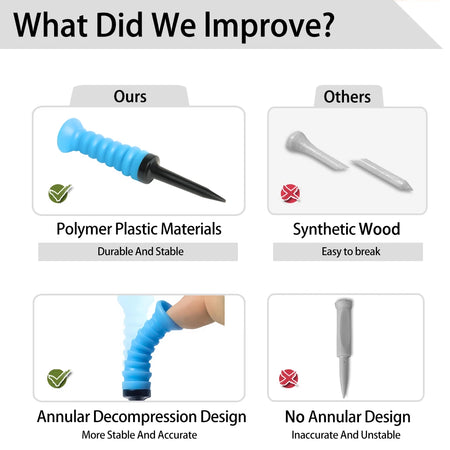 Vylepšete své tee s Caiton 5 Pack 360 Flex Gumovými Golfovými Tee v živém multikolorovém setu. Každé tee má délku 3.2 palce (81 mm), což je univerzální velikost, která vyhovuje širokému spektru golfových míčků pro trénink i soutěžní hru. Design 360° flex se ohýbá bez zlomení, což udržuje vaše nastavení konzistentní a odpal míče hladký. Povrch s nízkým třením snižuje odpor při nárazu, což zajišťuje čistší kontakt a zlepšený let míče. Navrženo pro trvanlivost, tato tee odolávají opakovanému použití ve všech povětrnostních podmínkách, což je činí spolehlivou volbou na driving range nebo hřišti. Multikolorová paleta—Žlutá, Červená, Modrá, Oranžová a Růžová—přidává viditelnost a styl vaší hře, což vám pomáhá rychle identifikovat vaše tee na přeplněných tee boxech.