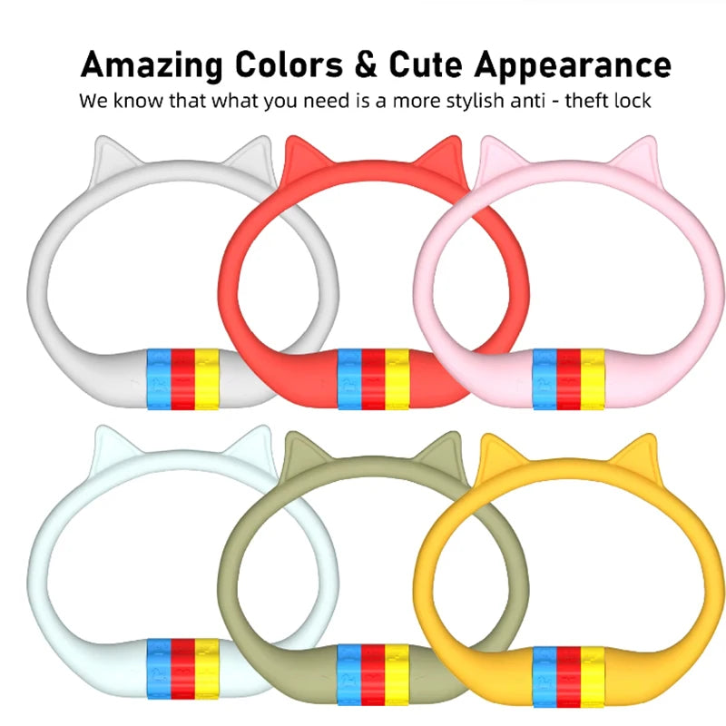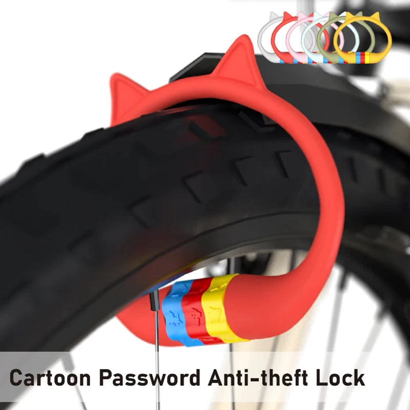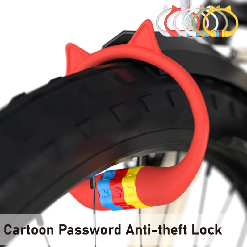 Kreslený roztomilý kombinovaný zámek na kolo se silikonovým krytem, přenosný zámek na kolo