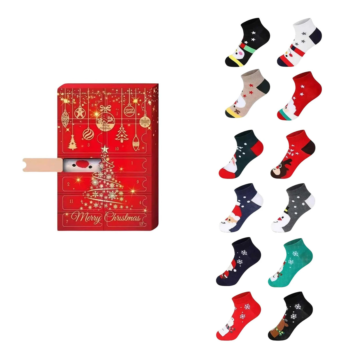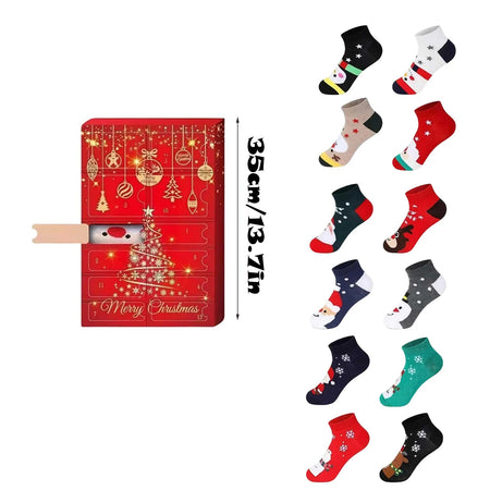 Vánoční ponožky adventní kalendář 24 ks slepá krabice s Claus sobem zimní styl, trendy látkové punčochy dárek