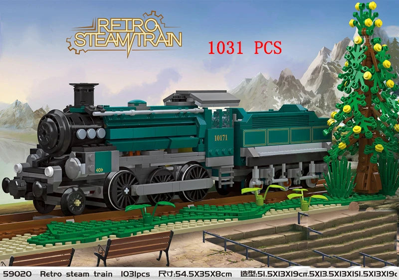 Souprava městského vlaku parního vozidla nákladní železnice – kompatibilní s Legem: Barevná, malá bloková parní nákladní vlaková souprava navržená pro kreativní stavění, vystavení a hru. Ideální pro sestavování realistických železničních scén a imaginativní vyprávění příběhů.