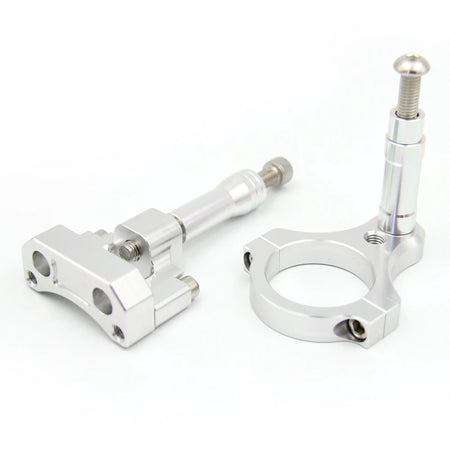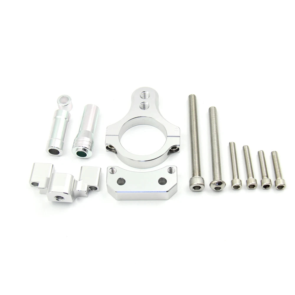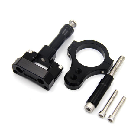 Vylepšete svůj Yamaha YZF R3, YZFR25 nebo MT-03 s montážní sadou držáku tlumiče Yamaha YZF R3 MT-03 YZFR25, CNC obráběnou. Tento precizně CNC-obráběný držák tlumiče je vyroben z kovu a dokončen v černé barvě, navržen tak, aby bezpečně upevnil váš řízení tlumič (SD-001) pro modely YZF R3, YZFR25, MT-03 a MT-25 z let 2013–2016. Poskytuje robustní, přesně padnoucí montážní bod, který zlepšuje stabilitu přední části, snižuje potápění při tvrdém brzdění a zpevňuje pocit řízení během energické jízdy, závodních dnů nebo každodenních dojíždění. Navrženo tak, aby odolalo vibracím a teplu s odolnou kovovou konstrukcí, pomáhá vám udržet důvěru a kontrolu na náročných silnicích. Před objednáním se prosím ujistěte, že tato část pasuje na vaši motorku; může být použita pouze s řízením tlumičem SD-001.