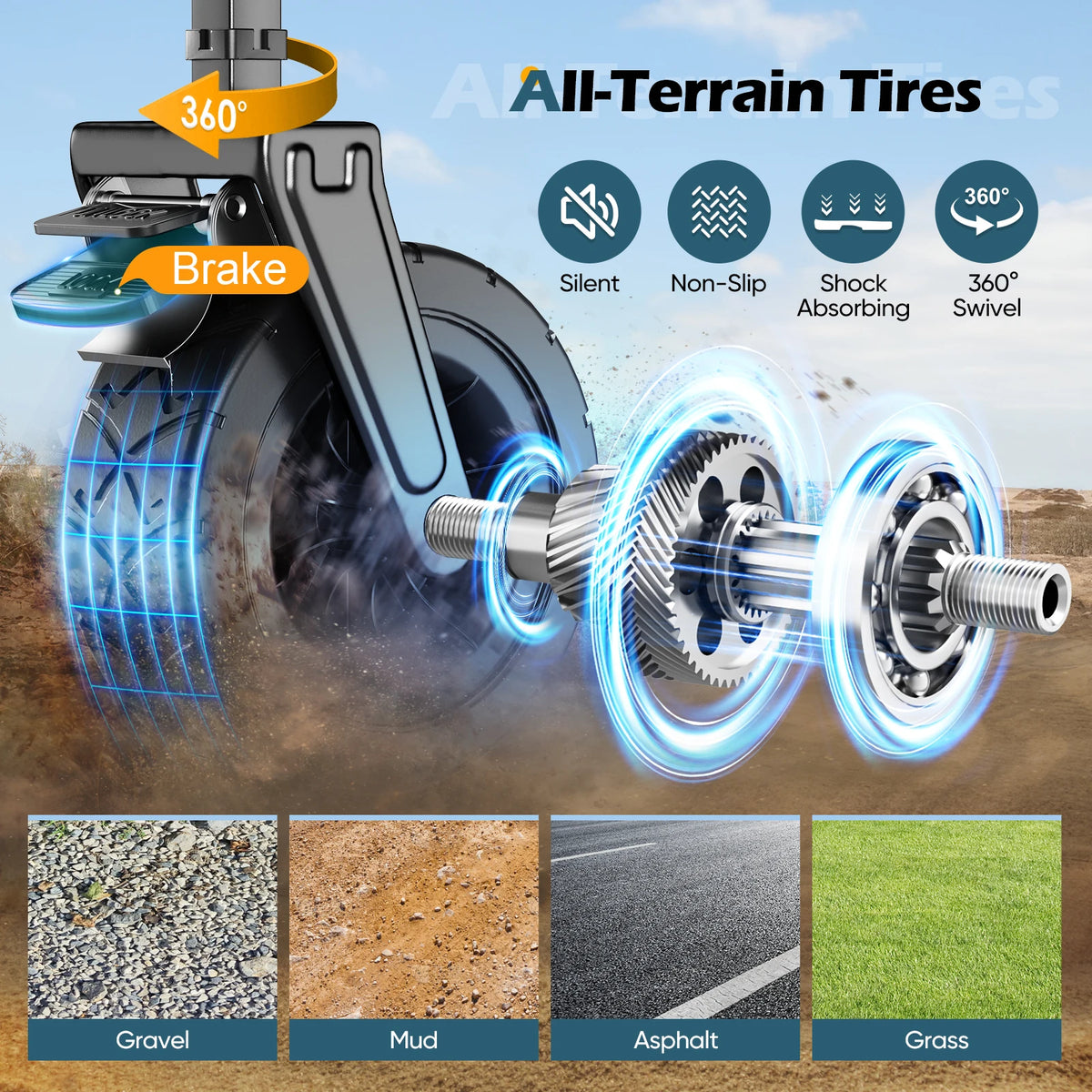 - Kola: Čtyři terénní kola s brzdami