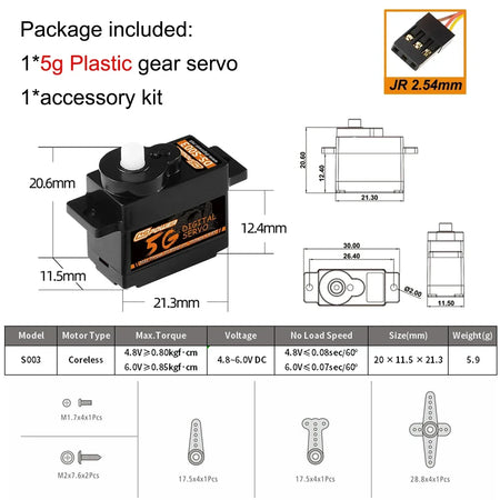 Perfektní pro RC nadšence, kteří chtějí vylepšit nebo přizpůsobit svá vozidla, toto servo je nejen snadné na instalaci, ale také poskytuje spolehlivou funkčnost. Ať už létáte s modelovým letadlem nebo řídíte mini auto, tento produkt je nezbytný pro dosažení požadované kontroly a citlivosti.
