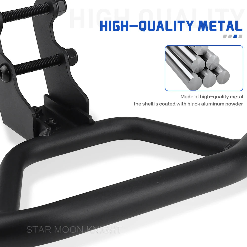 Jeho chytrý design zahrnuje ochranu předního panelu a podporuje volitelné panely a/nebo ochranné kryty motoru pro dodatečnou ochranu ze strany. Držák umožňuje instalaci volitelného držáku mlhového světla, což vám poskytuje dodatečné osvětlení, když to nejvíce potřebujete. Ať už se pohybujete po tmavých stezkách nebo klikatých horských silnicích, tento držák mlhového světla vám pomáhá vidět a být viděn.