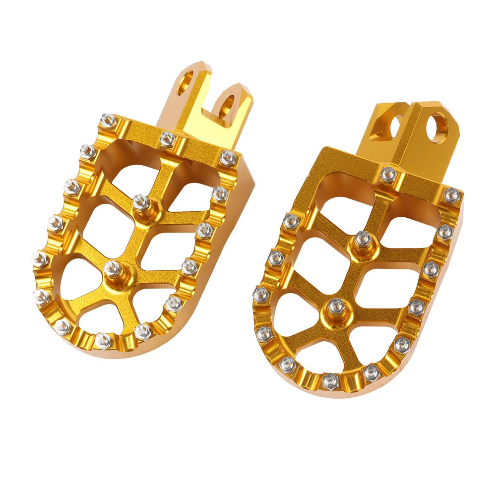 Vylepšete svůj Suzuki RM125, RM250 a RM250Z s těmito prémiovými hliníkovými stupačkami od S2R. Vyrobené z kovaného T7 7075 hliníku, poskytují výjimečnou pevnost a lehký výkon pro náročné jízdní podmínky. Robustní zuby jsou vyrobeny z kalené oceli, aby odolávaly opotřebení, a zuby jsou odnímatelné a vyměnitelné pro snadnou údržbu. Dokončeno odolným eloxováním v červené, modré, zlaté nebo černé barvě, tyto stupačky odolávají blednutí a korozi, zatímco dodávají odvážný, závodní vzhled vašemu motocyklu. Tyto stupačky jsou 100% zcela nové a navrženy pro snadnou instalaci, i když pokyny k instalaci nejsou zahrnuty. Pro nejlepší výsledky prosím použijte originální pružinu vašeho motocyklu během instalace. Eloxování zajišťuje dlouhotrvající, stylový povrch, který zůstává ostrý jízdu za jízdou.