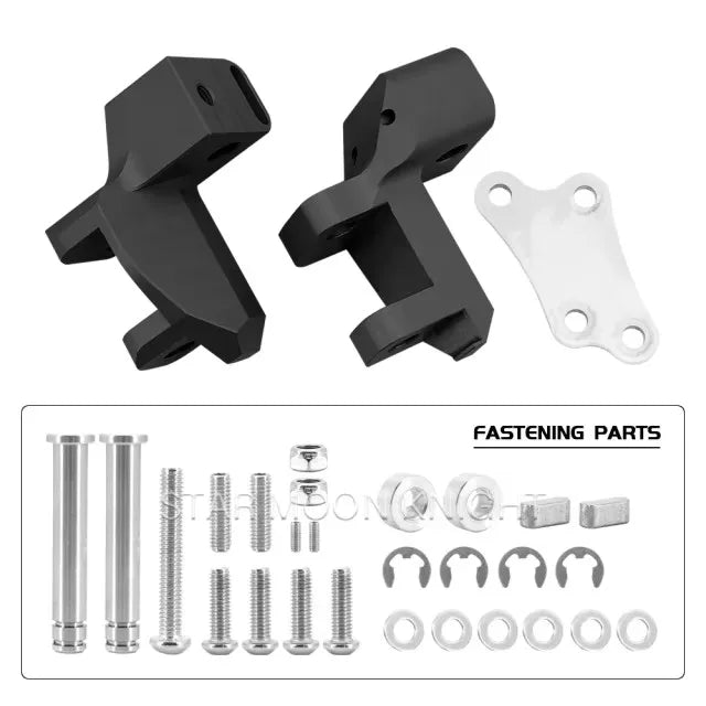 Zvyšte pohodlí při jízdě na vašem BMW s BMW R1250RT R1200RT LC Sada na snížení stupaček pro přední stupačky řidiče a přesun stupaček. Navrženo z ergonomického hlediska, tato CNC frézovaná hliníková sada posune stupačky přibližně o 30 mm níže a mírně dopředu. Výsledkem je znatelně uvolněnější jízdní pozice, která snižuje napětí v kolenou, minimalizuje křeče a činí dlouhé cesty snadnými. Zarovnáním vašich nohou s konturou nosiče stupaček a minimalizací offsetu získáte lepší rovnováhu a větší důvěru při zatáčení. Je to přesné, tovární vylepšení, které se bezproblémově mísí s designem motocyklu pro jednotnou, pohodlnou jízdu.