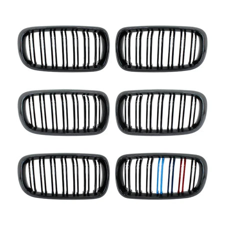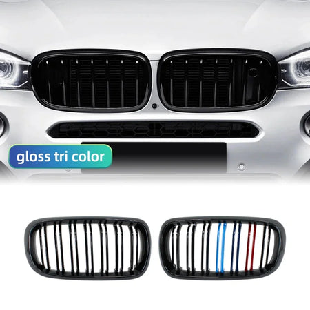 Vylepšete svůj BMW X5 nebo X6 s odvážným, závodním vzhledem. Tyto BMW X5 X6 Černé Přední Mřížky Dvojité Lamely Závodní Mřížky jsou prémiovou náhradou na trhu, vyrobenou z lehkého ABS plastu. Lesklý černý povrch dodává moderní, agresivní přední část, zatímco zachovává trvanlivost a snadnou údržbu. Navrženy tak, aby osvěžily opotřebované nebo zastaralé mřížky, zvyšují atraktivitu bez obětování výkonu nebo přizpůsobení.