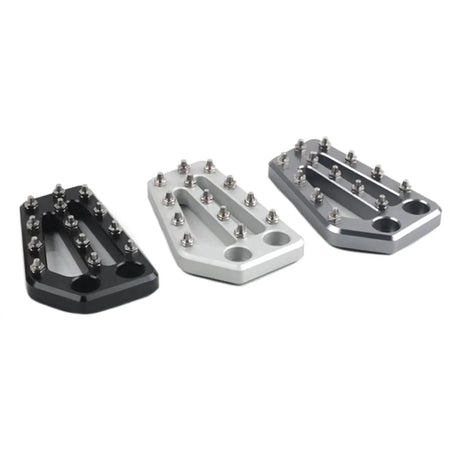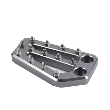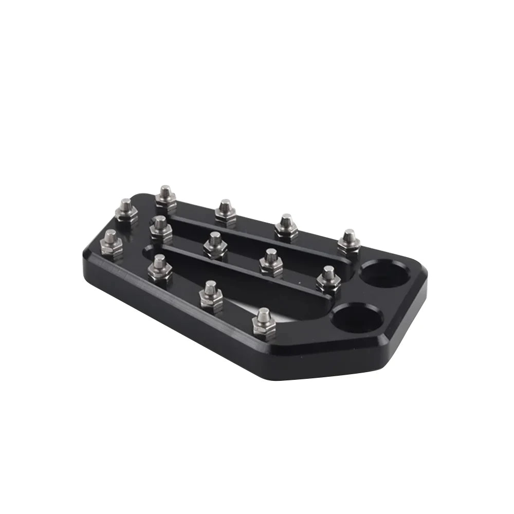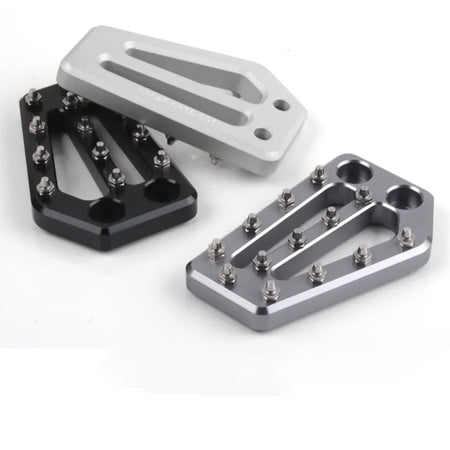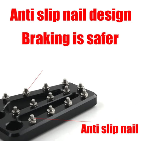 Rozšíření řeší běžný problém při jízdě: původní brzdový pedál může být příliš malý, což zvyšuje pravděpodobnost sklouznutí a snižuje přesnost brzdění. Zvýšením plochy pedálu a přidáním protiskluzových hřebíků poskytuje stabilnější a bezpečnější brzdný zážitek, zatímco také zlepšuje estetickou přitažlivost motocyklu. Je lehké, robustní a navrženo tak, aby se hodilo k vzhledu a pocitu vašeho motocyklu. Snadno se instaluje a je navrženo pro dokonalé přizpůsobení vašemu motocyklu, mějte na paměti, že pokyny k instalaci nejsou zahrnuty.