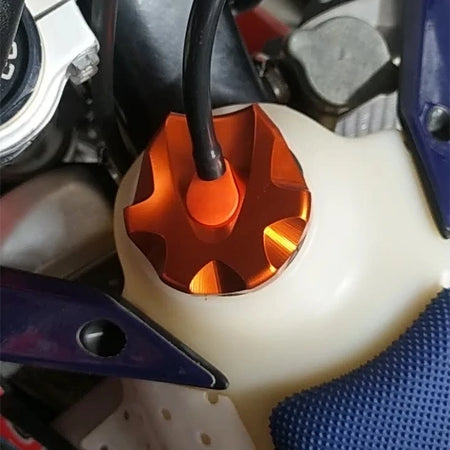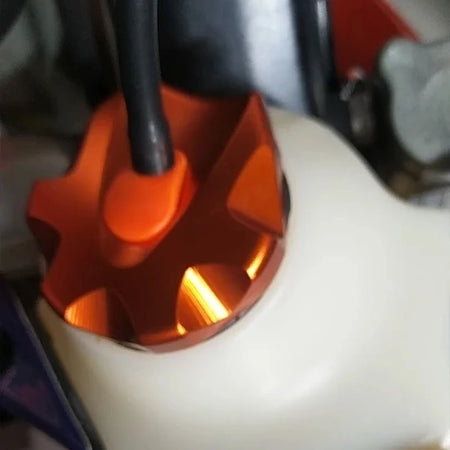 Vylepšete svůj zážitek z jízdy s ochranným krytem víčka palivové nádrže GasGas MC MC-F EC EX EX-F, precizně navrženým příslušenstvím, které chrání vaše víčko palivové nádrže a zároveň přidává nádech stylu. Vyrobeno z odolného hliníku T6061 a dokončeno elegantním anodizovaným povrchem, tento kryt odolává nejtěžším trasám a mytí. Inovativní design s nakloněním a drážkou zajišťuje snadné otevírání, i v blátivých, chladných nebo energických jízdních podmínkách. Navrženo pro víčka paliva s 1/4 otáčkou, pasuje na GasGas MC/MC-F 250/350/450 (2021–2024), EC/ECF 250/300/350 (2021–2024) a EX/EX-F 250/300 (2021–2024), stejně jako na off-road modely KTM a Husqvarna s kompatibilními víčky.