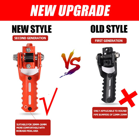 Drsný povrch zajišťuje spolehlivý grip i s těžkými botami, zatímco skládací design udržuje stupačky kompaktní, když je prostor omezený. Vyrobeny z vysoce kvalitní nerezové oceli 304, jsou navrženy tak, aby odolávaly korozi a vydržely drsný terén a počasí. Univerzální průměr 20–26 mm je činí všestranným vylepšením pro kompatibilní modely Honda a podobné velikosti trubek.