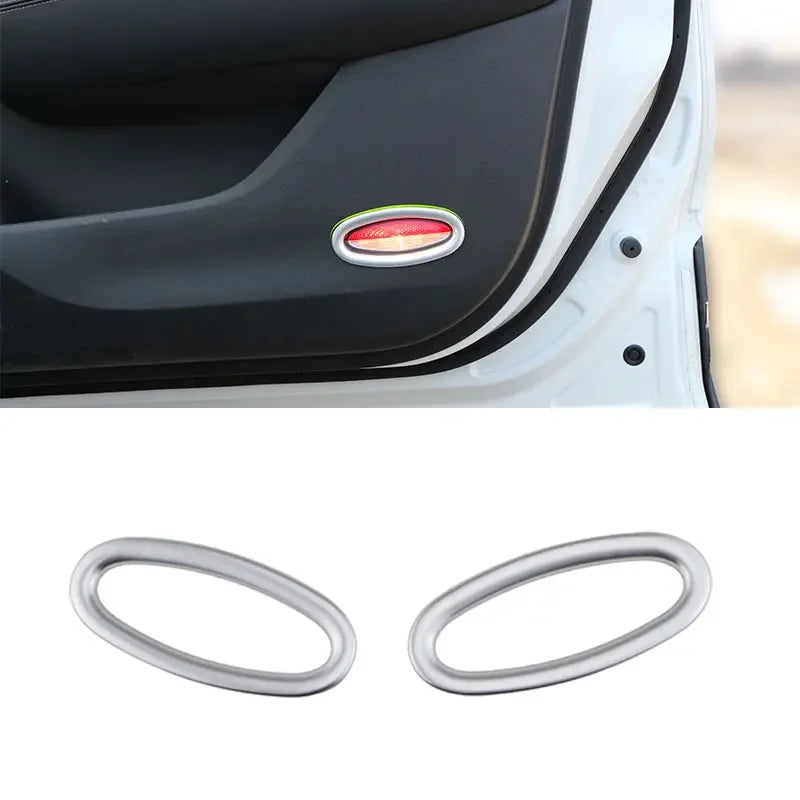 Vylepšete interiér Renault Koleos (QM6) těmito kryty světel předních dveří v matném stříbře ABS. Tato sada 2 kusů od Choice chrání vaše osvětlení dveří před oděrkami a otisky prstů, zatímco dodává vaší kabině rafinovaný, moderní vzhled. Vyrobeno z odolného ABS a dokončeno v univerzální matné stříbrné, bezproblémově se mísí s mnoha interiérovými styly. Snadná instalace a navrženo pro přesné uchycení na předních dveřích, tyto kryty poskytují čistý, integrovaný vzhled přímo z krabice.