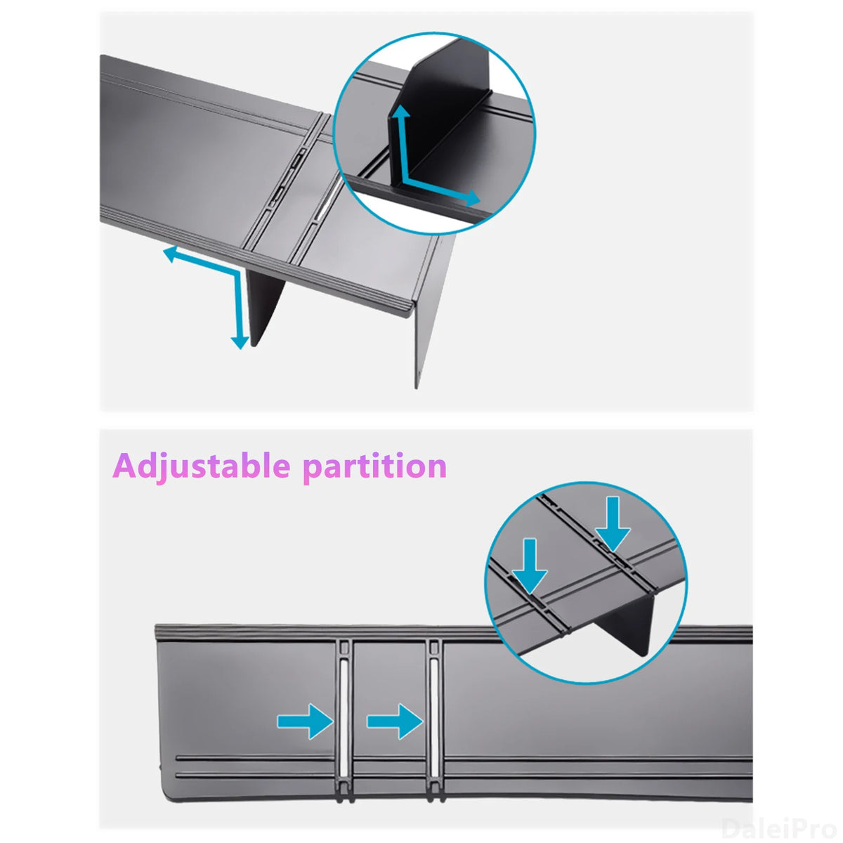 Nastavitelný design vám umožňuje přizpůsobit přihrádky tak, aby vyhovovaly vašim nezbytnostem—peněženka, telefon, sluneční brýle, kabely, manuály—takže se dostanete k tomu, co potřebujete, aniž byste museli hrabat. Jeho kompaktní, obdélníkový tvar se hodí k vašemu palubnímu desce a nebrání jiným ovládacím prvkům, což činí každodenní jízdy bezpečnějšími a organizovanějšími.