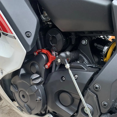 Vylepšete svou Yamahu MT-07, Tracer 700 a XSR700 s páčkou stabilizátoru řazení S2R pro přesné řazení. Tento komponent z hliníkové slitiny CNC‑obrobený zpevňuje boční pohyb hřídele převodovky, čímž pomáhá předcházet nesprávnému řazení a falešným neutrálním polohám, které mohou poškodit vaši převodovku. Posunutím pákového bodu blíže k páce řazení a použitím jehlového ložiska nebo bronzové vložky z fosforu poskytuje rychlejší, pozitivnější řazení a hladší jízdní zážitek. Anodizovaný povrch v černé, modré nebo červené barvě poskytuje odolný, závodní styl. Kompatibilní s Yamahou MT‑07 (2014–2023), Tracer 700/Tracer 7 (2016–2023), XSR700 (2018–2023), FZ07, FZ07 ABS (2015–2017/2017), R7 (2021–2023), Tenere 700 / XTZ700 (2019–2024), Tenere 700 Rally Edition (2020–2024) a variantami World Raid.