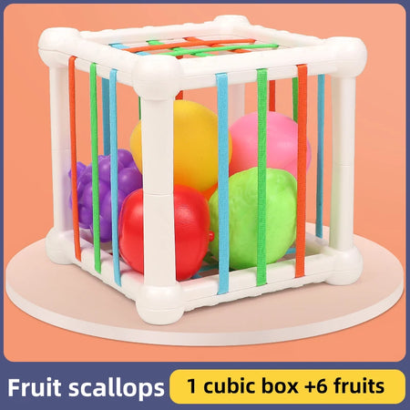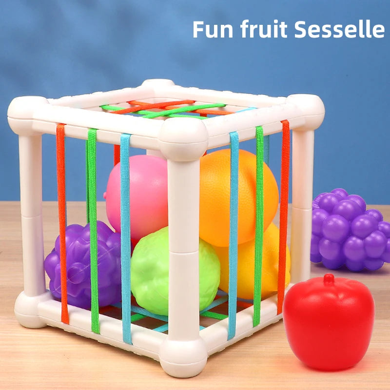 - Podporuje jemné motorické dovednosti a koordinaci rukou a očí, když miminka dosahují, uchopují a manipulují s kousky ve tvaru ovoce.