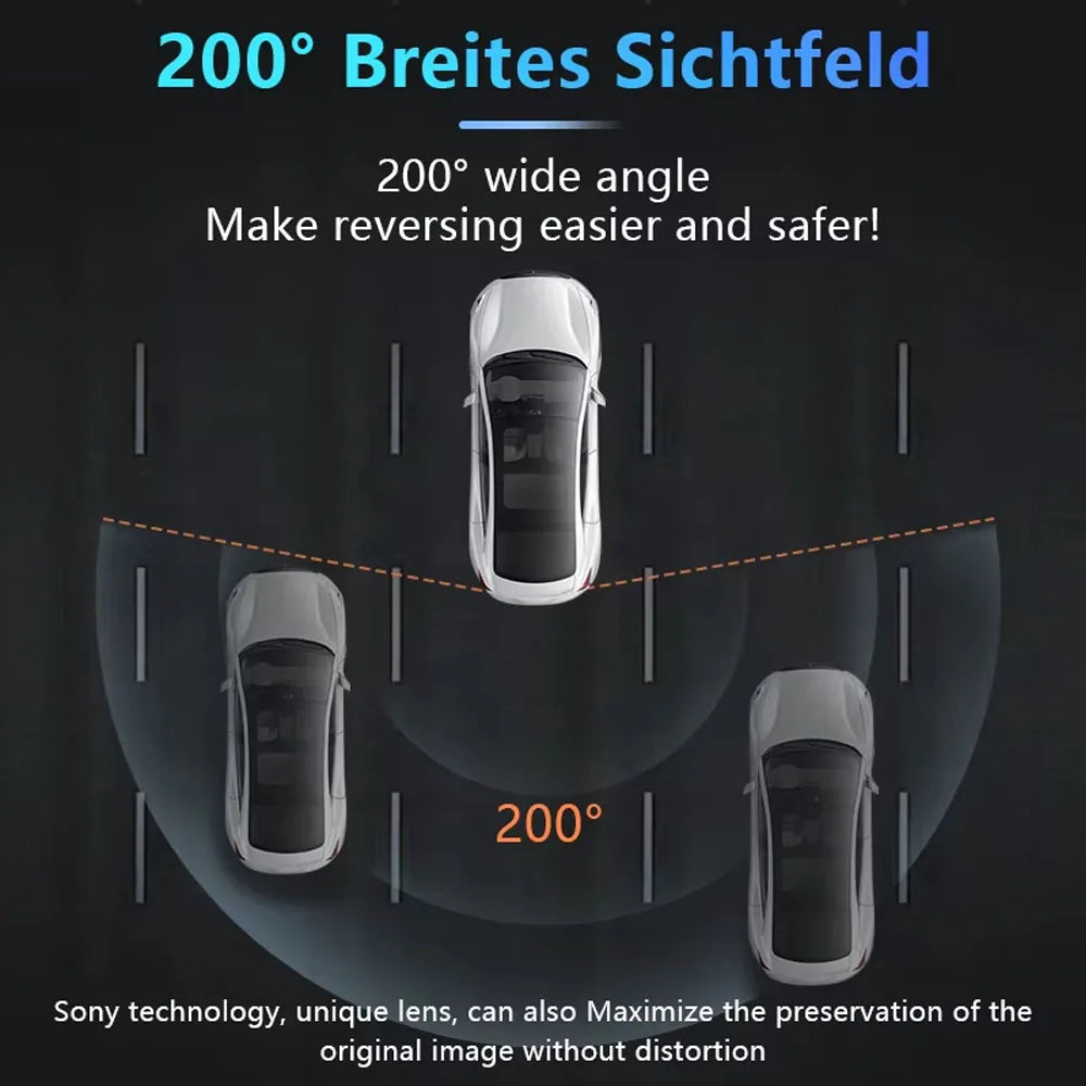 Užijte si komplexní pohled na své okolí s naší 1080P zadní kamerou do auta, vybavenou 200° rybím okem se zlatým objektivem pro širokoúhlý výhled. Noční vidění zajišťuje jasnost a bezpečnost za nízké viditelnosti, což z ní činí nezbytný nástroj pro noční jízdu.