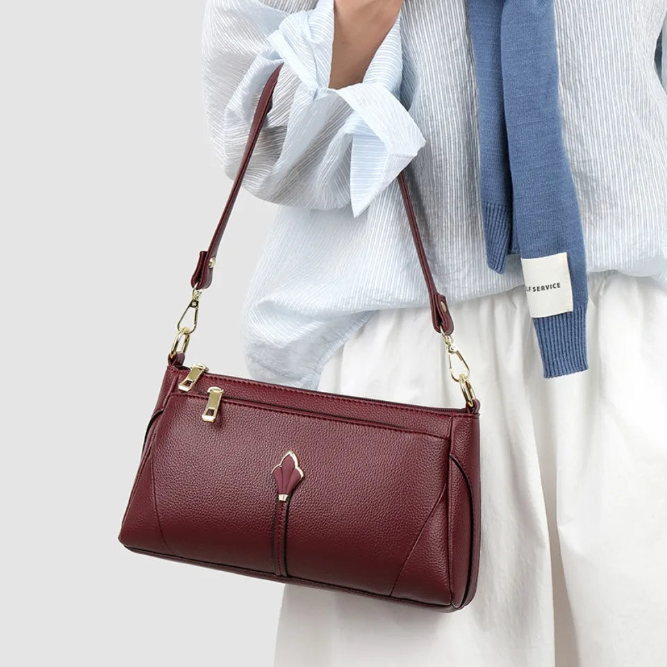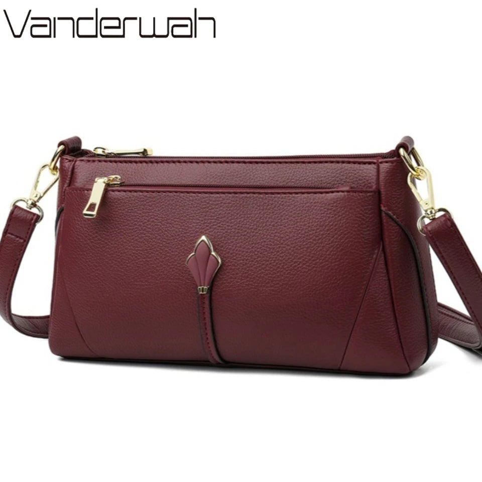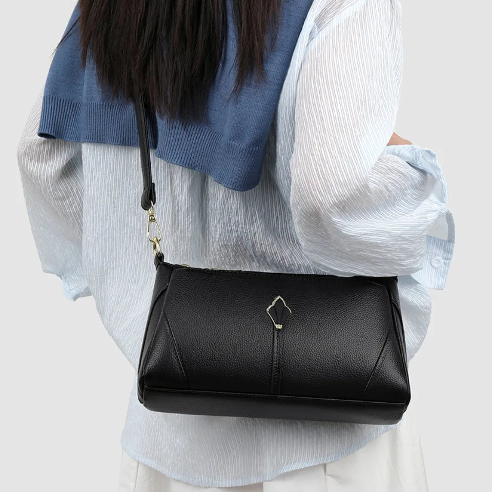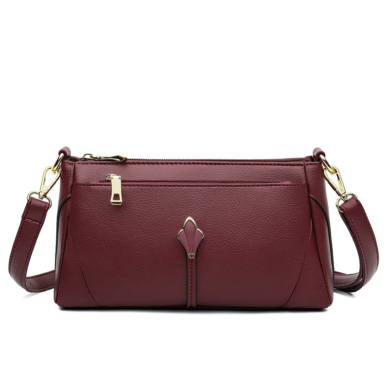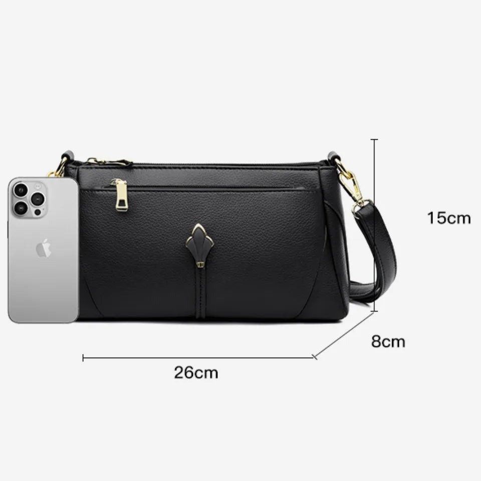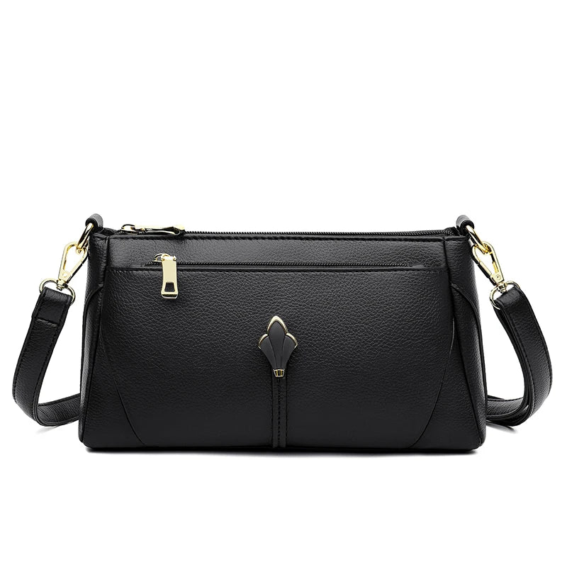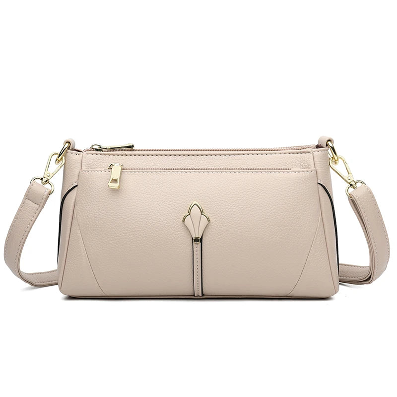 Pravá měkká kožená kabelka pro ženy, ramenní crossbody taška s kapsami na zip, vysoká kvalita