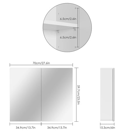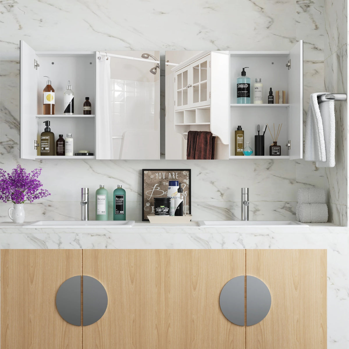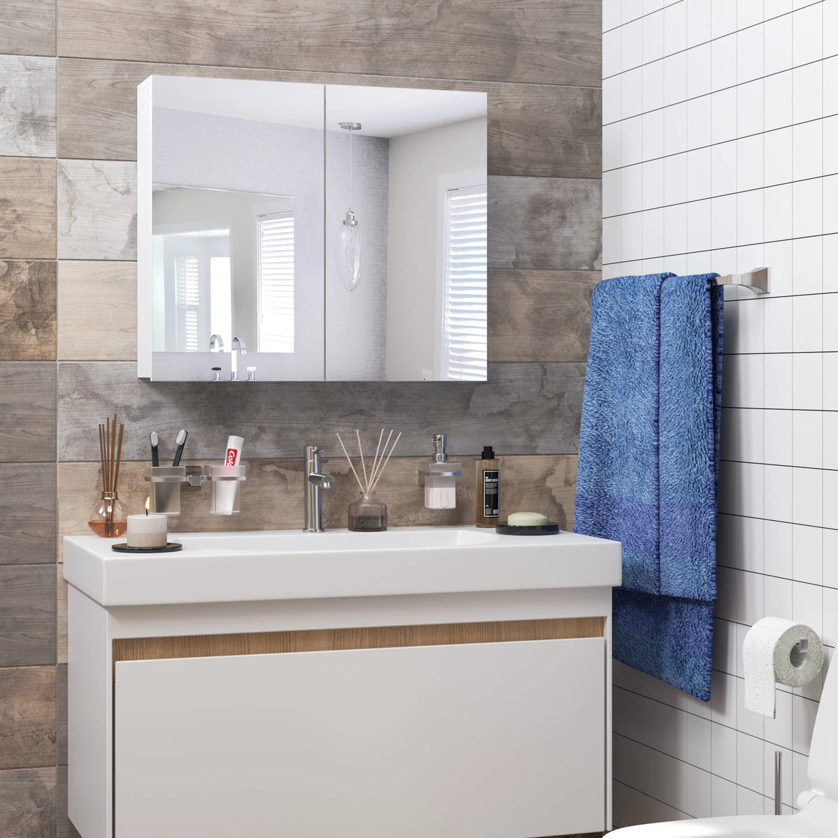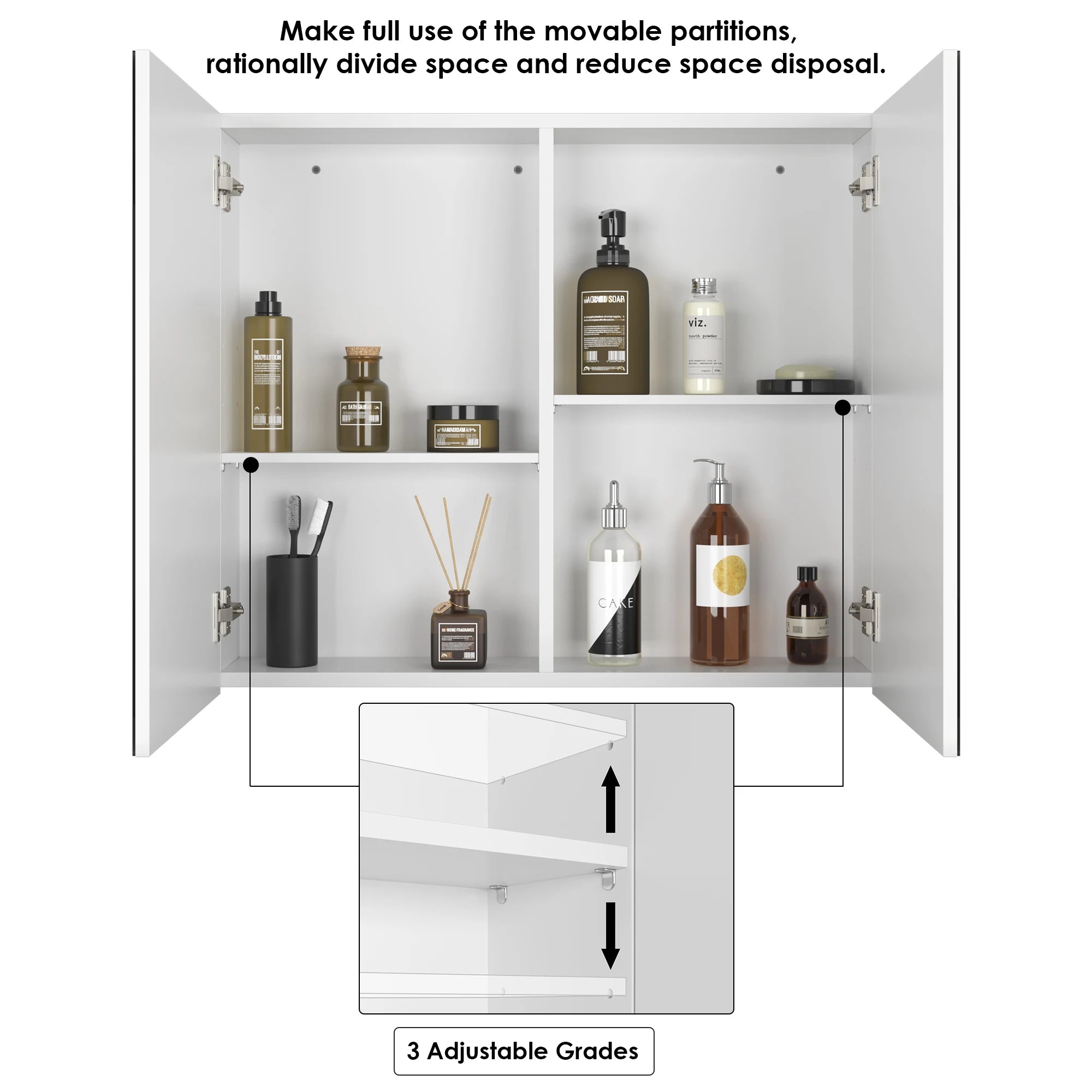 Zrcadlová skříňka na zeď Getone v bílé barvě nabízí elegantní, moderní úložné řešení, které kombinuje každodenní použití zrcadla s praktickým organizováním koupelny. S dvěma bezrámovými zrcadlovými dveřmi se otevírá a odhaluje skryté úložiště za zrcadly—ideální pro šampon, sprchový gel, ústní vodu, hrnky, ručníky a další. Bíle lakované tělo v kombinaci s jasnými, bezrámovými zrcadly prosvětluje prostor a hodí se do různých stylů koupelen.