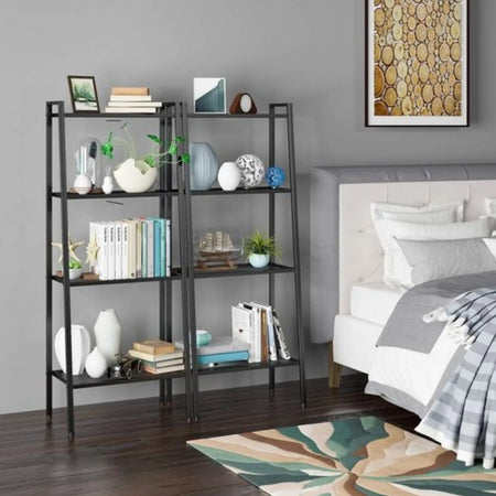 Osvěžte svůj obytný prostor s knihovnou Getone 4 Tier Ladder Shelves v černé barvě. S rozměry 60x35x147 cm, tato moderní kovová knihovna spojuje čisté linie s praktickým úložištěm, což z ní dělá stylový středobod, který vaše místnost zaslouží. Čtyřúrovňový design poskytuje dostatek prostoru pro vystavení knih, fotografií, kancelářských potřeb a dekorativních předmětů, přičemž vše zůstává uklizené a na dosah.