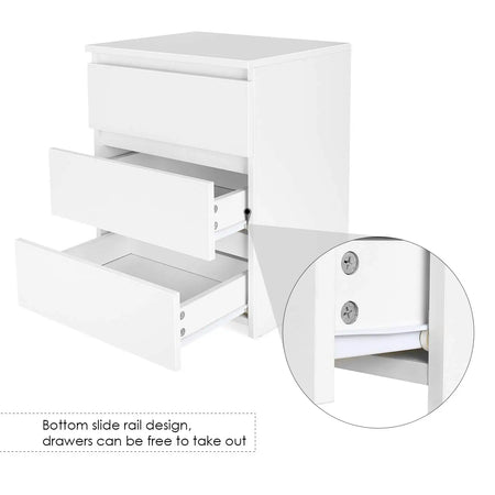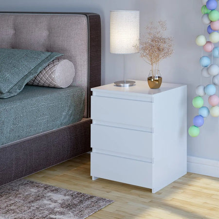 Getone Bílý Noční Stolek 3 Zásuvkový pro Ložnici