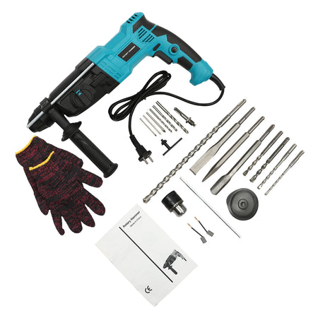 Seznamte se s elektrickým rotačním kladivem H28-26 800W navrženým pro rychlé a přesné vrtání do betonových stěn. Navrženo tak, aby odolalo náročným pracovním podmínkám, používá tělo z kvalitního plastu a hliníku s kalením a nátěrem, aby odolalo deformaci a rzi. Výkonný motor 800W z čisté mědi poskytuje až 3J impaktové energie a proměnlivou rychlost 0-1200 ot./min pro efektivní práci se zděním. S třemi režimy—kladivo, vrták a sekáč—přístupnými pomocí jednoho voliče, se můžete rychle přizpůsobit vrtání, sekání nebo kladivovým úlohám bez výměny nástrojů. Odnímatelná rukojeť otočná o 360° poskytuje ergonomickou kontrolu a snižuje únavu, zatímco ovládání vpřed/zpět zajišťuje plynulý provoz v obou směrech. Bezpečnost je zvýšena automatickou spojkou a ochranou proti přetížení; otvory pro odvod tepla na obou stranách pomáhají předcházet přehřátí během dlouhých sezení. Součástí je přenosný kufr, který usnadňuje transport, a sada je vybavena vhodnými vrtáky a sekáči, aby vám pomohla začít hned. Tento nástroj ve standardu EU 220V je ideální pro betonové stěny a projekty zdění. Všechna elektronická a mechanická zařízení, přístroje a stroje prodávané společností InterCyprus do zemí EU jsou certifikována CE a mají dvouletou záruku. Na intercyprus.com od roku 2002 — důvěryhodné pro kvalitu a spolehlivost.