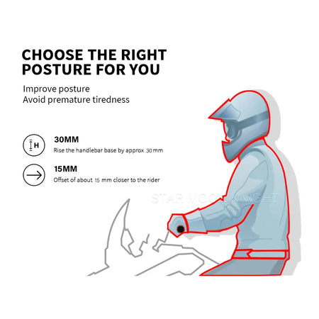 Vylepšete svou jízdu s adaptérem pro držáky řídítek CFMOTO 800MT, prodloužením brzdové hadice a zvedacím výškovým zesilovačem. Tento integrovaný kit zvedá řídítka a přibližuje je k vám, čímž poskytuje ergonomickou jízdní polohu, která snižuje napětí na zádech, pánvi, kostrči a pažích. Ideální pro turistiku, pomáhá vám zůstat uvolněný na dlouhých cestách a zvyšuje pohodlí bez nutnosti rozsáhlých úprav. Rychlá instalace za pár minut vám umožní užívat si pohodlnější polohu a lepší kontrolu během okamžiku.