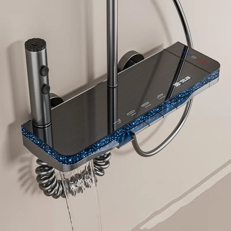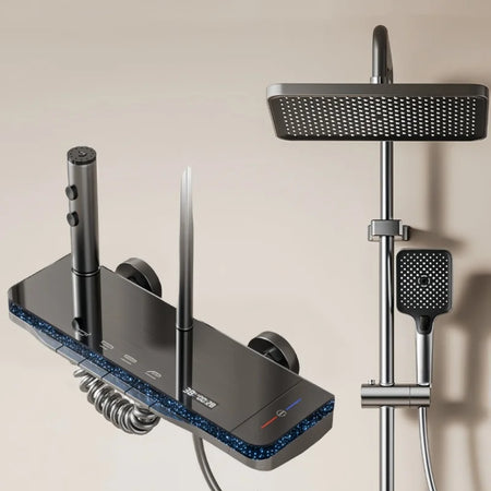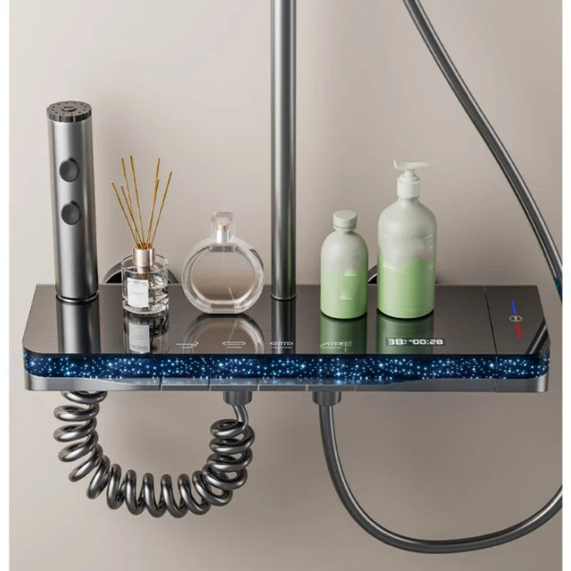 - Sprchový systém: čtyřfunkční, směšovač teplé a studené vody s teplotním displejem