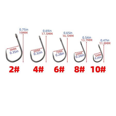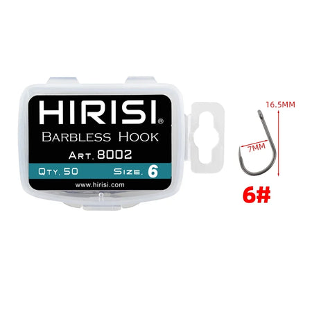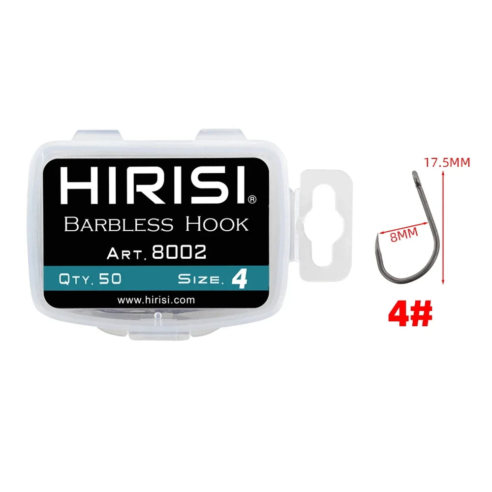 Objevte Hirisi PTFE potažené 50ks vysoce uhlíkových háčků bez barbíku 8002 — prémiové rybářské háčky navržené pro rybáře na jezerech a sladkovodních vodách, kteří si cení spolehlivosti a rybám přátelského vybavení.
