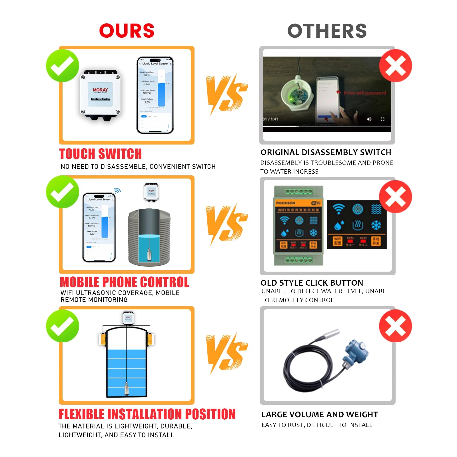 Moray 5M Monitor úrovně vody ME202RSP LCD displej Tuya WiFi je chytré, solární napájené řešení pro přesné, automatické monitorování úrovně nádrže. S elegantním LCD displejem a integrací aplikace Tuya SmartLife můžete sledovat úrovně vody nebo oleje v reálném čase odkudkoli. Spolehněte se na ultrazvukové snímání pro přesné údaje (±0,02 m) až do 5 metrů a užívejte si plynulou automatizaci domácnosti s bránou, která komunikuje prostřednictvím RF433 a WiFi. Navrženo pro nepřetržitý provoz, toto zařízení vám pomáhá vyhnout se rozlití, přetečení a nečekanému vyčerpání—takže můžete efektivněji a ekonomičtěji řídit zásoby.
