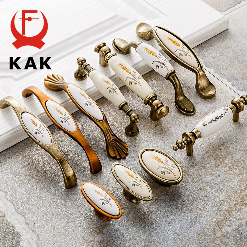 KAK Antické bronzové keramické úchyty na skříňové dveře zinku slitiny knoflíky