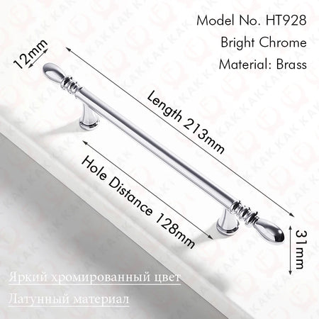 KAK Jasná Chromová Mosazná Rukojeť Dveří Skříně 128mm
