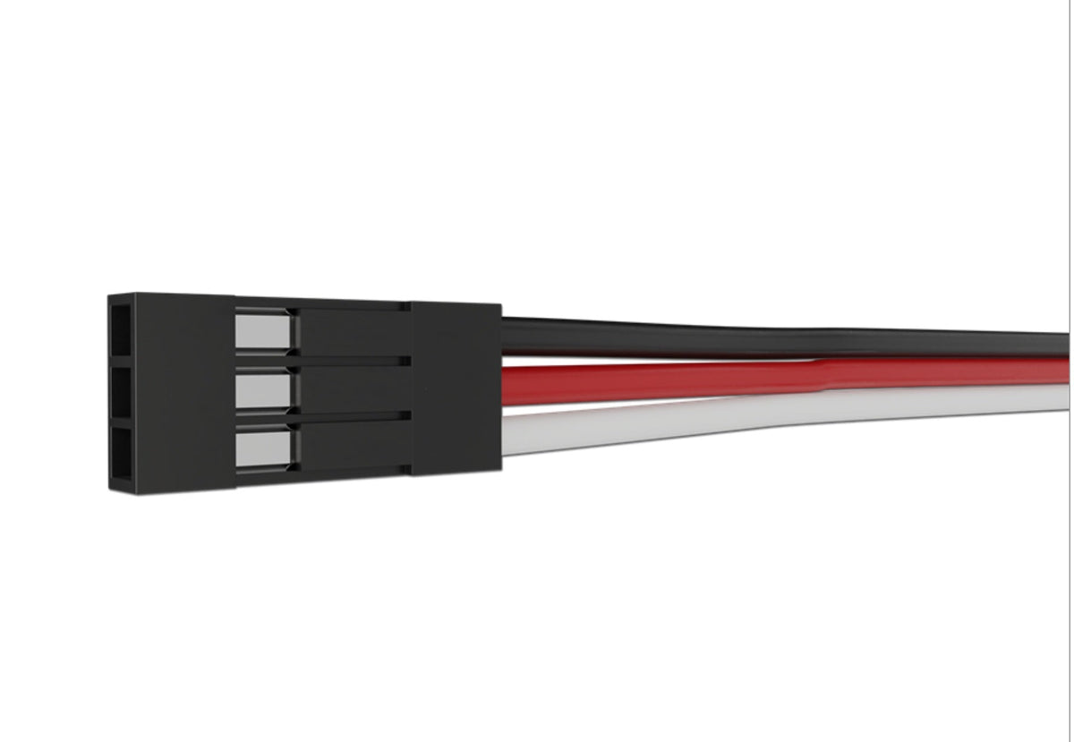 **Důležitá poznámka**: Zajistěte kompatibilitu s provozním napětím 6V. Není plug-and-play s přijímači Futaba s výstupem pod 6V; zvažte použití Smart Fly Power Expander nebo Orbit Power Jack pro správnou funkčnost.