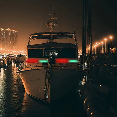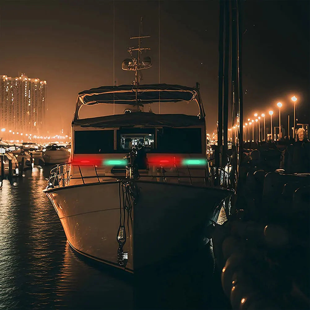 - Pokyny pro barevné kódování: Červená označuje levobok (port), zelená označuje pravobok (starboard) a bílá označuje záď, což vám pomáhá bezpečně manévrovat.