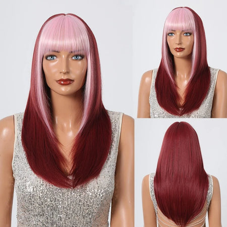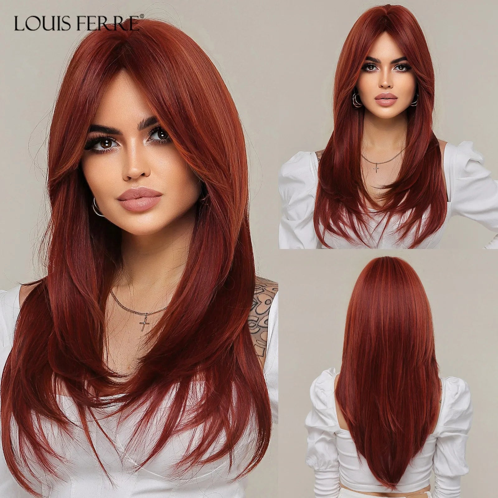 LOUIS FERRE dlouhá rovná červenohnědá měděná syntetická paruka pro každodenní použití