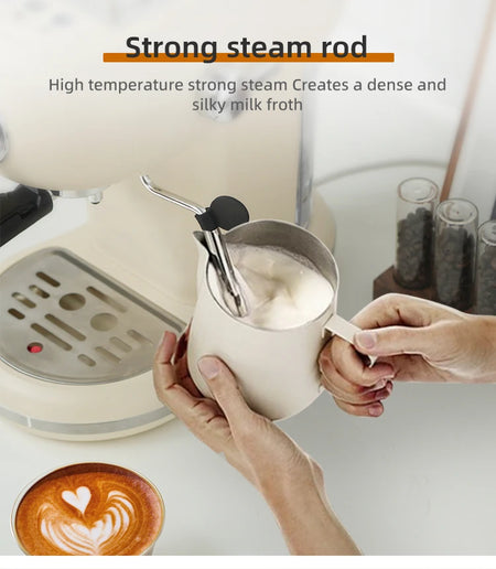 19 Bar Polosamostatný Espresso Stroj s Parním Generátorem, Kompaktní Latte Tvořič
