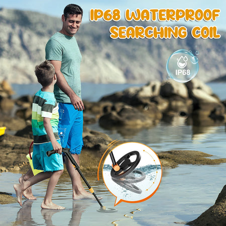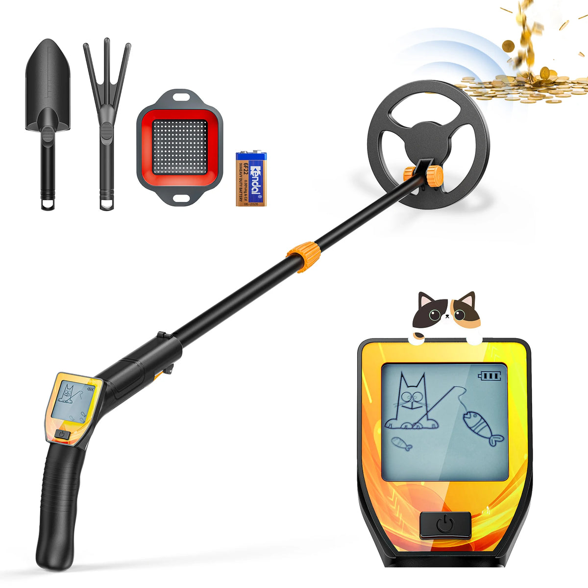Vodotěsná vyhledávací cívka o průměru 6,5" je schopna detekovat předměty až do hloubky 4" (10 cm), včetně železa, hliníku, mincí a prstenů. S vodotěsnou ochranou IP68 si děti mohou s důvěrou prozkoumávat mělkou vodu. Nastavení úhlu cívky 0-180 stupňů se přizpůsobuje různým terénům, od písčitých břehů po travnatá pole, zatímco podsvícený LCD displej udržuje akci viditelnou i při slabém osvětlení. Hrací design kočky na rybaření na displeji dodává kouzlo a přátelské pípnutí doprovází každý objev pro větší vzrušení.