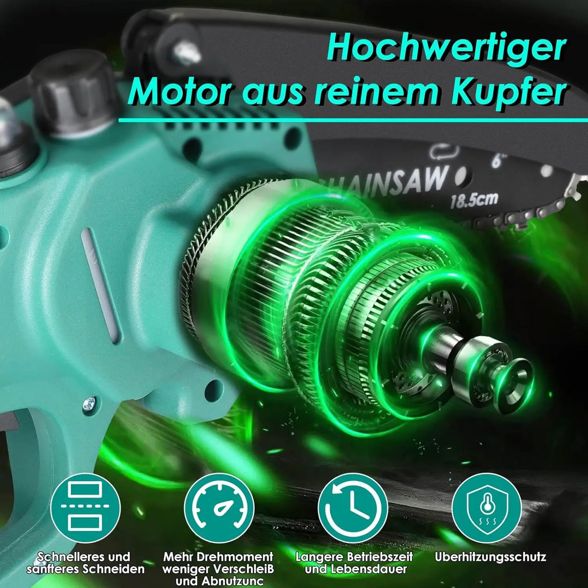 Síla se setkává s praktičností díky 830W motoru z čisté mědi, který pohání řetěz rychlostí 7 metrů za sekundu. Tato rychlost vám umožní zvládnout 6palcové větve za přibližně 10 sekund, poskytující čisté, rychlé řezy a snižující únavu při delších projektech. Velký točivý moment pomáhá prodloužit životnost nástroje tím, že snižuje opotřebení během výbuchů řezné síly.