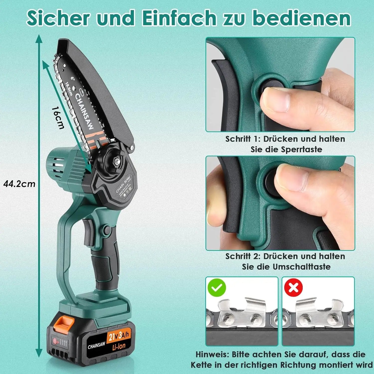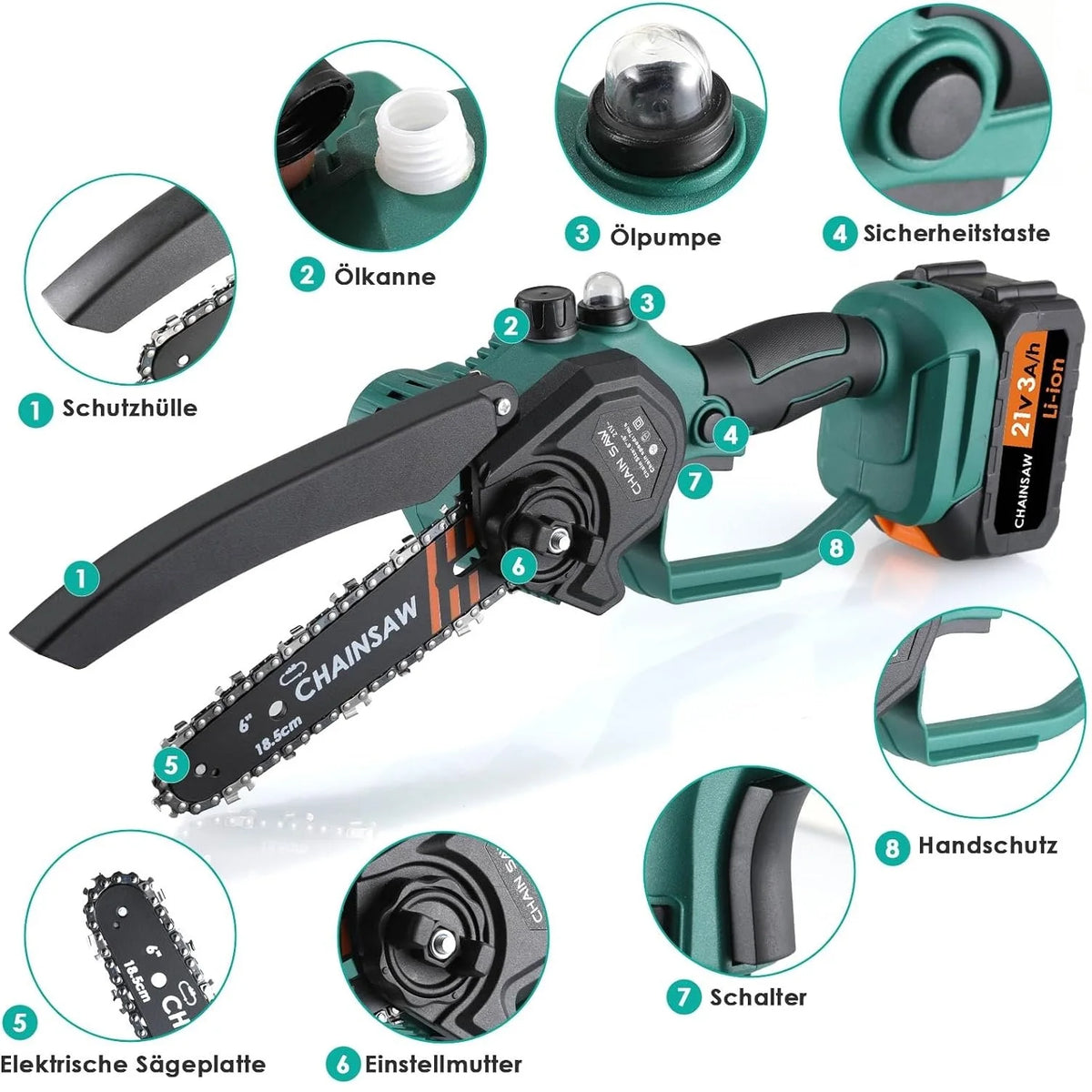 - Model: Mini řetězová pila, 6palcová elektrická bezdrátová řetězová pila