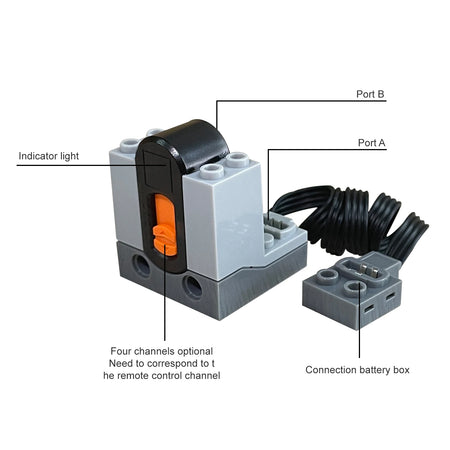 Navržena pro trvanlivost a bezpečnou, spolehlivou hru, tato sada používá ABS plast a je navržena pro snadnou integraci s existujícími systémy kostek. Obsahuje 2.4G dálkový ovladač a přijímač, bateriový box, více motorů, LED osvětlení a prodlužovací kabely—vše, co potřebujete k napájení realistických, reaktivních modelů. Sada je certifikována CE (Certifikát SPF24039512) a veškeré elektronické a mechanické zařízení prodávané společností InterCyprus do zemí EU má dvouletou záruku pro zajištění a dlouhodobé používání.