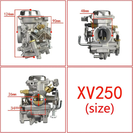 - Snadná výměna na kompatibilních modelech Yamaha Virago Route 66 a V Star 250; před instalací zajistěte kompatibilitu velikosti karburátoru 26mm a montážní příruby.
