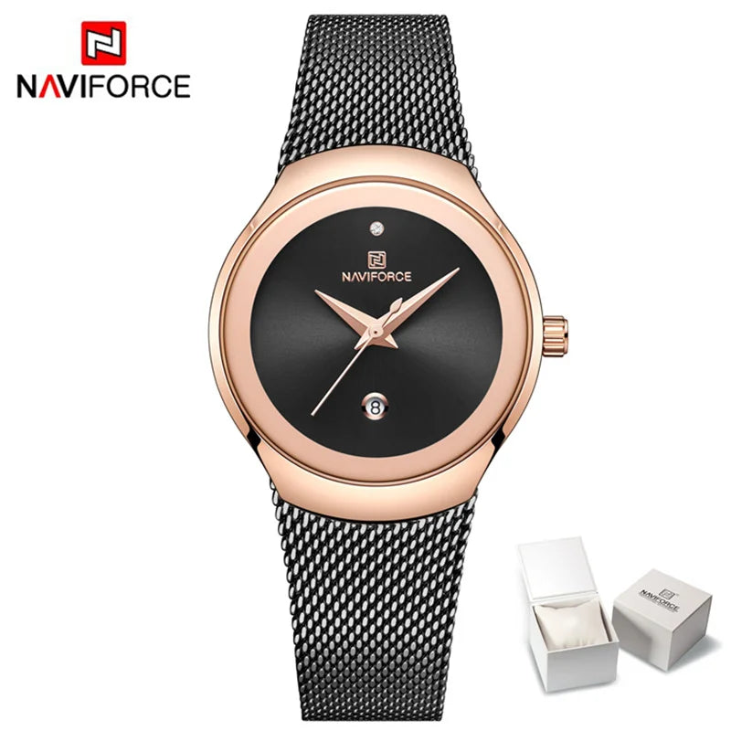 NAVIFORCE 2022 Dámské hodinky Luxusní růžově zlaté ultra tenké dámské hodinky Luxusní vodotěsné quartzové náramkové hodinky pro ženy Relogio Feminino