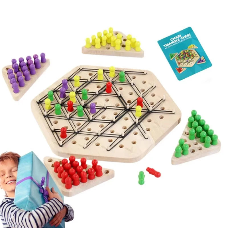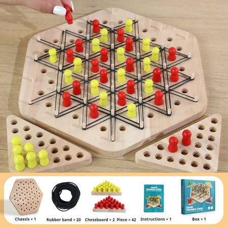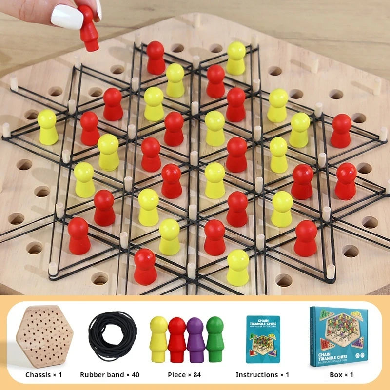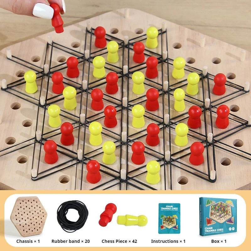 Objevte hru Chain Triangle Chess Puzzle Game s tréninkem gumiček — chytrá, hmatová výzva, která spojuje strategické myšlení s praktickým manipulováním. Použijte zahrnuté gumičky k vytvoření dynamických konfigurací řetězů a trojúhelníků, které prověří vaše plánování, trpělivost a přesnost. Ať už jste nadšenec do hádanek, fanoušek šachu, nebo hledáte zábavnou rodinnou hru, tato všestranná sada nabízí poutavou akci, která prověří váš mozek.
