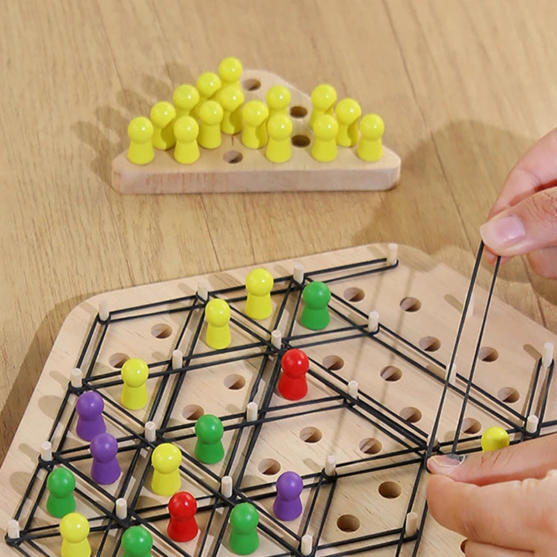 - Podporuje strategické myšlení a řešení problémů, když plánujete tahy v konfiguracích řetězového trojúhelníku a výzvách s gumičkami.